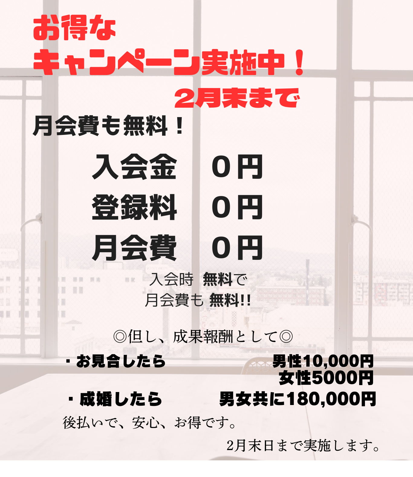 お見合い料:男性 10,000円 / 女性 5,000円