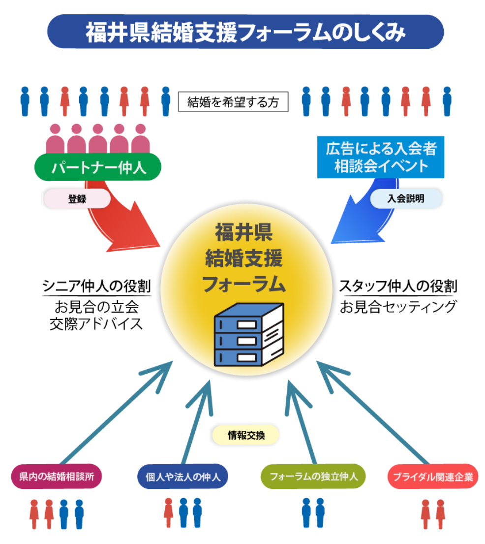 私たち福井県結婚支援フォーラムは、地域の少子化問題を真摯に受け止め、出会いと結婚の機会を創出することで、福井の未来を担う新しい命と家庭を育むことに貢献します。