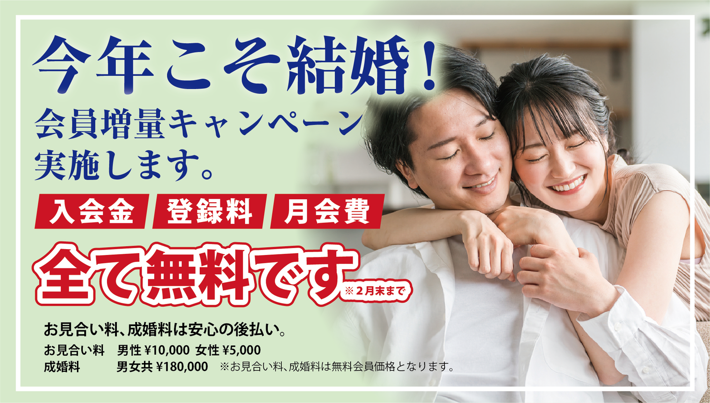 福井県結婚支援フォーラムでは、より多くの方に出会いの機会をご提供するため、会員増量キャンペーンを実施いたします。